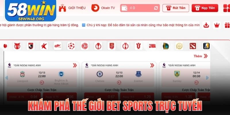Thể thao là danh mục đang tạo nên cơn sốt trên thị trường cá cược nhờ sự đầu tư bài bản về công nghệ và hệ thống sảnh chơi đa dạng. Sòng bạc 58Win chính là điểm đến lý tưởng cho những ai tìm kiếm bảng kèo xanh chín và môi trường giải trí minh bạch. Cùng đi sâu tìm hiểu những thế mạnh vượt trội của hạng mục này trong bài viết sau đây.